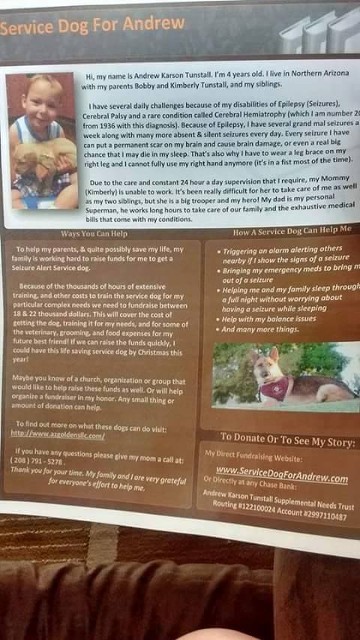 | 12/05/2015 - Caveman from the Twin Falls Chapter is asking for any assistance to help his Grandson Andrew obtain a service dog. Please visit www.ServiceDogForAndrew.com to read the full story and donate if you are able. Any and all efforts to help fundraise for this beautiful little boy is appreciated. God Bless this family! |